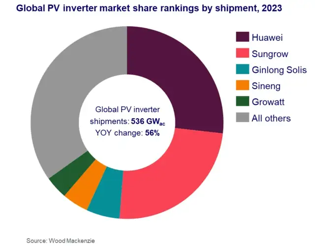 其三,它们都从制造业起家,相关研发能力强悍。比如,华为靠着早期在通信电源方面的研发积累,直接入局光伏逆变器市场,短时间内就摒弃了传统的集中式逆变器,开发出故障率更低的“组串式架构+智能化管理”模式,直接干到份额世界第一。华为数字能源在沙特建造的世界最大光伏储能微电网,也都采用了自己的智能组串逆变器、智能组串储能单元和自有电化学储能系统。