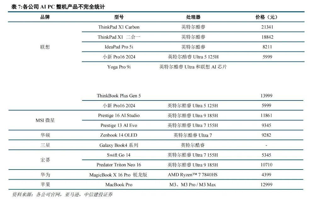 图片:AIPC将覆盖不同定位和价位 来源:中信建投