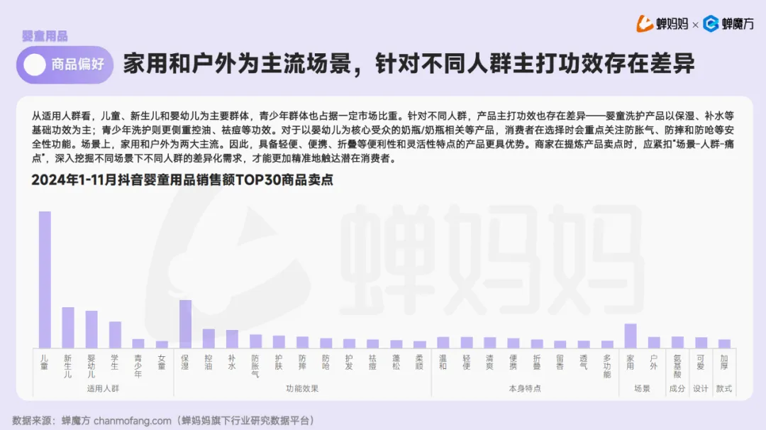 根据报告,2024年1月至11月期间,尽管抖音平台上母婴行业的动销商品数略有下降,但销量和市场规模分别增长了25%和35%,显示出强劲的增长势头。特别是在618购物节和双十一等大促节点上,市场的活力得到了显著激发。