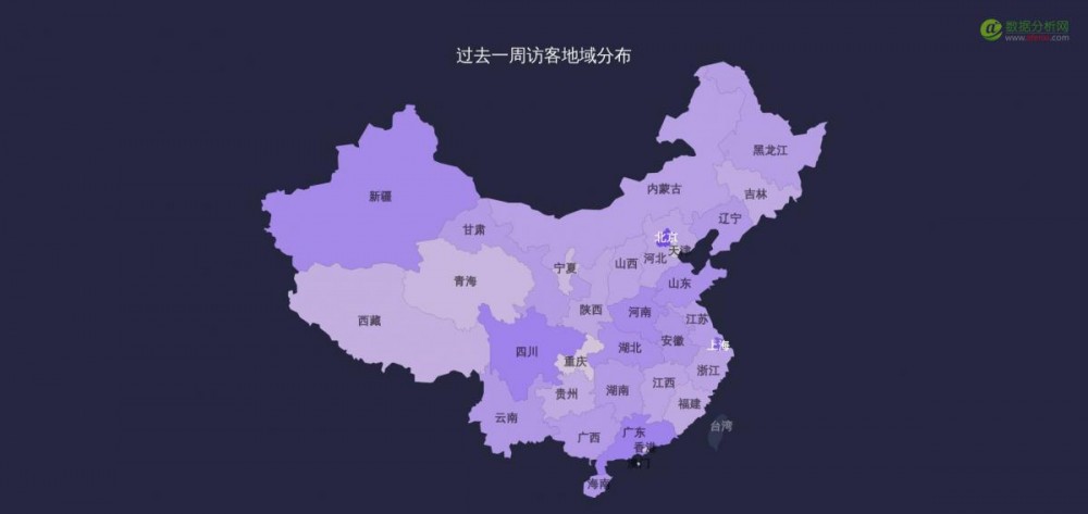 - 分析地区分布:全国、省份分布可用行政地图,更详细的地域分布可用经纬度地图。