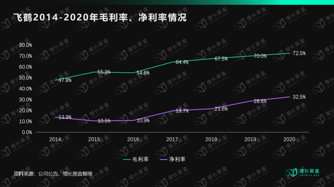 据飞鹤财报显示,2020年实现毛利134.78亿元,毛利率创新高达到72.5%。再看看同期竞对们的表现,澳优、雅士利的毛利率分别才49.86%和34%。