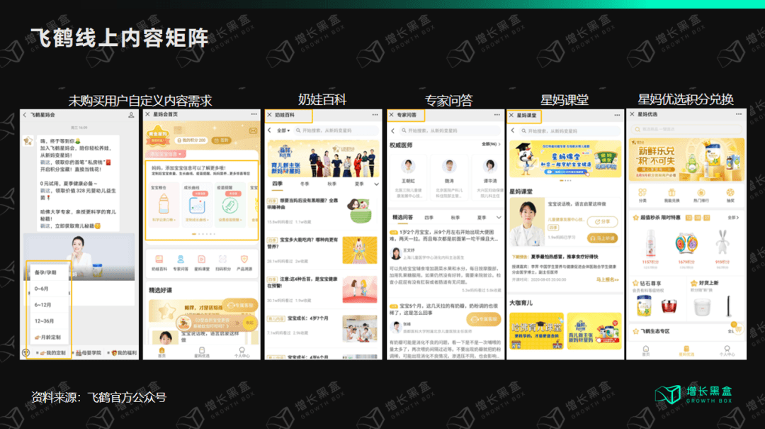 - d、母婴店、飞鹤营养顾问微信群与用户持续交流,引导门店复购