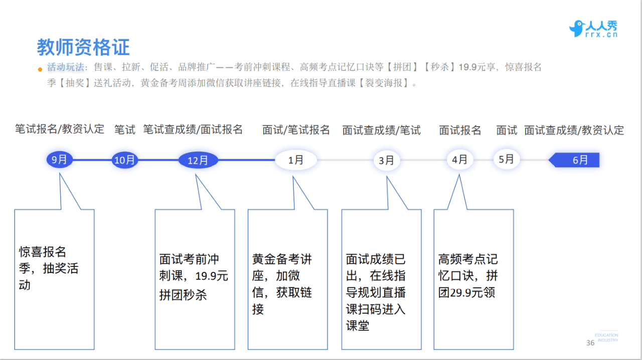 另外一个观察是,我们的用户,他们去做全年营销的时候,基本上都是考试重点节点+节日营销相结合的,像 K12 几个重要营销节点: