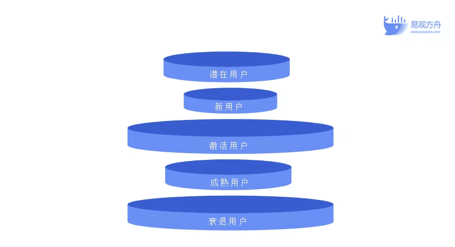 稳步发展趋势的倒状漏斗是我们最常见的用户分层结构,即从潜在用户到衰退用户逐渐往下递减。