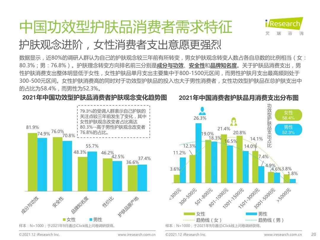从需求特征来看,女性消费者支出意愿更强烈,但男性护肤意识也有所提升,需求呈现双轮驱动趋势,选择功效型护肤品的主要原因都集中在解决肌肤问题、寻求成分安全和效果显著这三个方向。