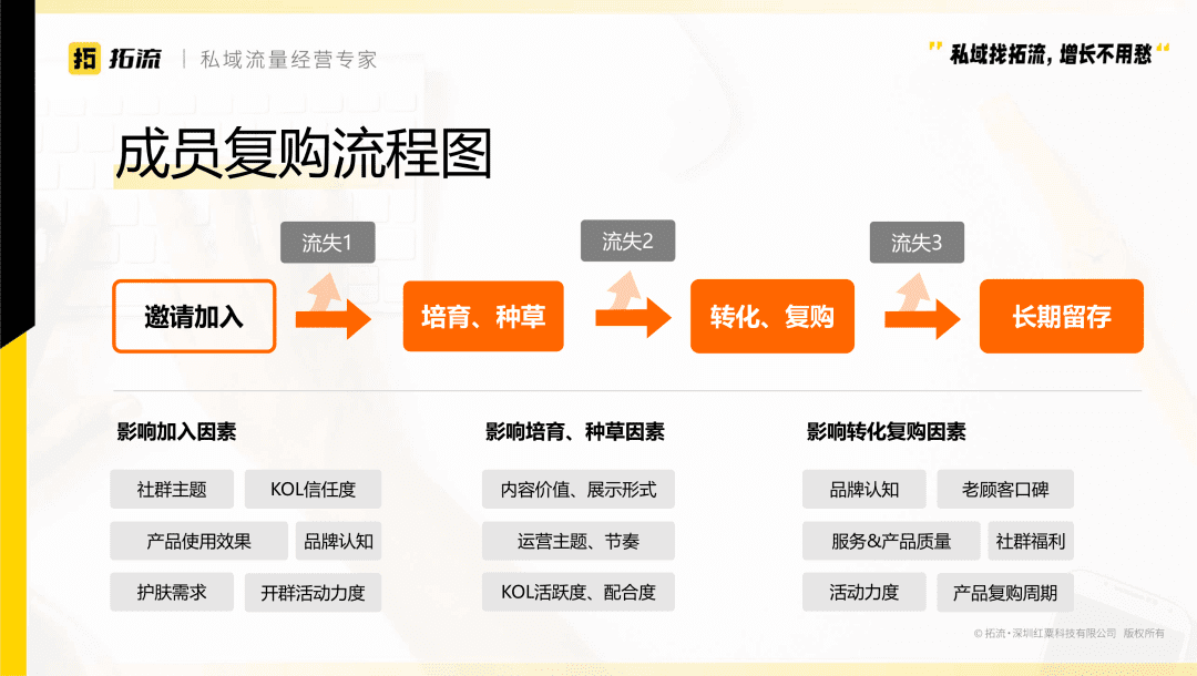 提升产品单价,难。提升客户数即拓客,也不简单。提升购买次数即复购,相对来说最简单,而做私域很适合解决复购问题。