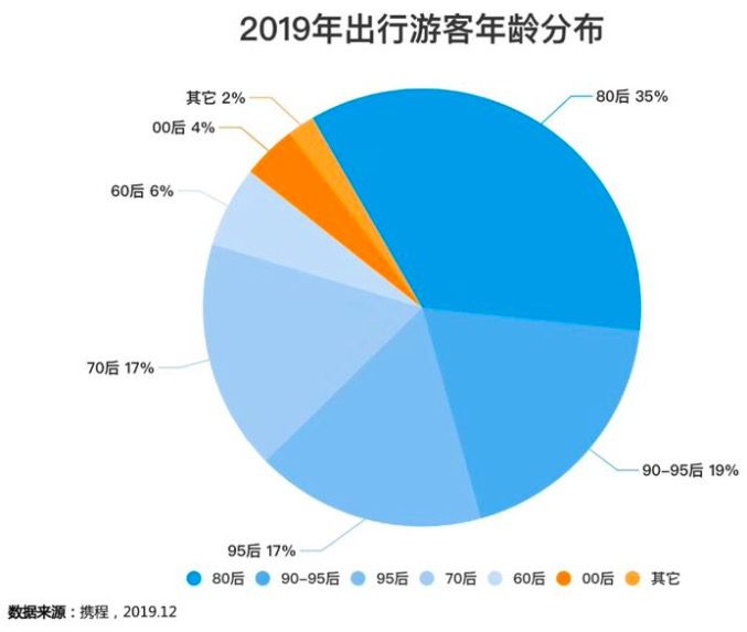 文旅市场消费客群发生了很大的更迭,年轻消费力崛起。携程集团《2019国民旅游消费报告》数据显示,从旅游消费人群占比来看,90后和95后占比36%,已经超越80后的35%。年轻一代成为旅游市场的主力军,随之而来的是消费价值观的变化,更加寻求个性化与情感认同,消费行为呈现兴趣导向、注重深度体验、热爱社交分享等特征。