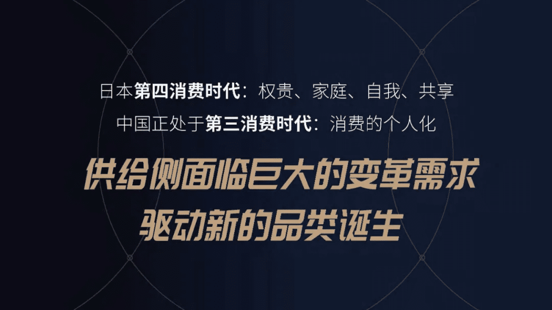 日本《第四消费时代》中提到:权贵、家庭、自我、共享这四种消费方式,今天日本已经处于共享消费这个第四消费时代,而中国仍处于第三消费时代,是个人化消费的时代,用一切消费去满足个人的塑造,这是今天消费当中最大的公约数。供给侧面临巨大的变革需求,驱动新的品类诞生。在过去的两到三年,在所有渠道新兴的品类都是满足这样一个需求才得以产生。
