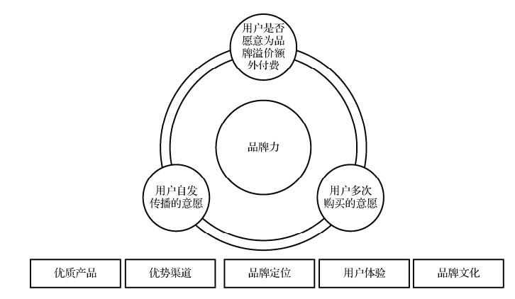 做品牌核心要构建的是消费者的决策心智,这个决策心智指的是:我愿意为品牌溢价额外付费吗?我是否愿意自发传播?我是否愿意多次购买?即上图的用户意愿三要素。