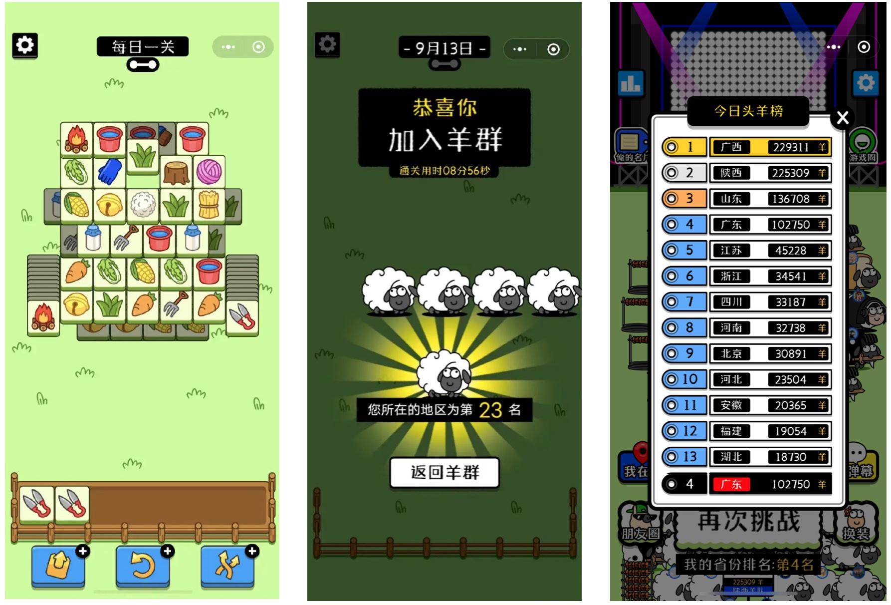 当年红极一时的《合成大西瓜》相信不少人都玩过,上线10天玩家破亿,是典型的低成本高流量现象级小游戏。最新的爆款则不得不提《羊了个羊》,通过三消基础玩法+精准的人性洞察达到玩家破百万、广告收入破千万的量级。 何谓精准的人性洞察?——