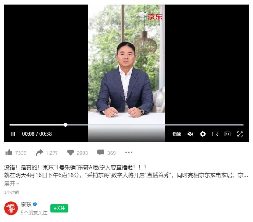 无论是一号位以数字人的形式来到台前,还是把一号位打造成数字人主播,对于刘强东和京东而言都是足够大胆的选择。特别是在低价战争、内容电商和AI电商交织的当下,这或许印证了刘强东和他的京东选择变革的决心。
