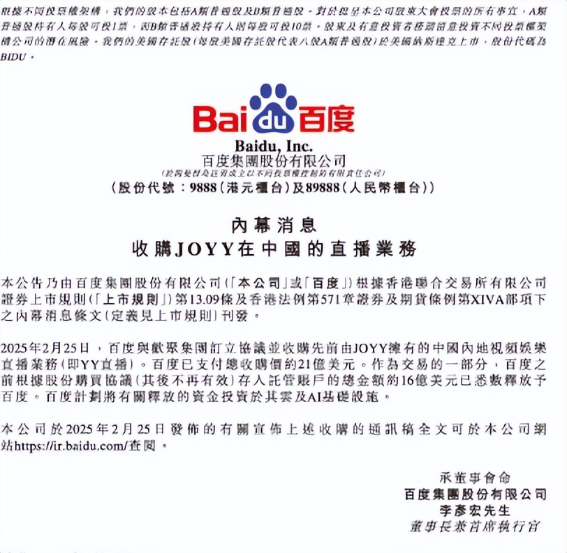百度收购YY直播,折射出的是传统互联网巨头在新时代的集体焦虑。在技术变革和用户需求快速迭代的今天,如何保持竞争优势,是所有互联网企业面临的共同课题。这场收购,或许只是一个开始。