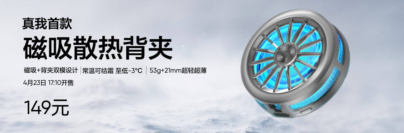 另外,真我还为手游玩家设计了两款冰感搭档:真我首款磁吸散热背夹,21mm+53g的轻薄一体化机身,售价149元;真我GT7冰感散热手机壳,让手机散热更快信号更强,首销价49元。