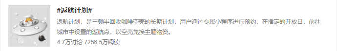 相比之下,类似Nespresso,优衣库等品牌的回收计划仅仅只做到回收这一个节点,而三顿半却将返航计划设计成用户复购留存计划的一个重要部分,这对于提升用户的品牌忠诚度有极大的利好。