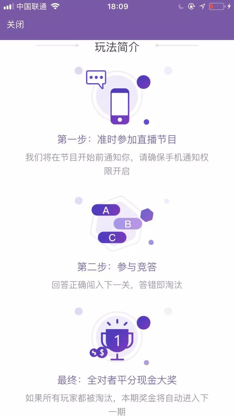 2、为什么所有的在线答题要用直播的形式呢?主要是为了增加游戏性,如果随时可答,一方面会产生作弊,另外一方面用户也失去了积极性和刺激感:想一下下一秒主持人嘴里念出的题目可能会决定你的去留,而你必须在很短的时间内做出反应,这直接关系到你能不能拿到几千块钱,你一面冥思苦想,一面指挥你朋友赶紧百度,是不是特别刺激?