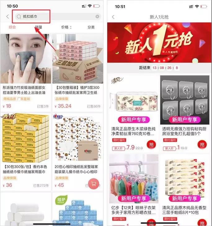 讲真,我还没反应过来,它已经跳到“新人 1 元抢”的页面了。