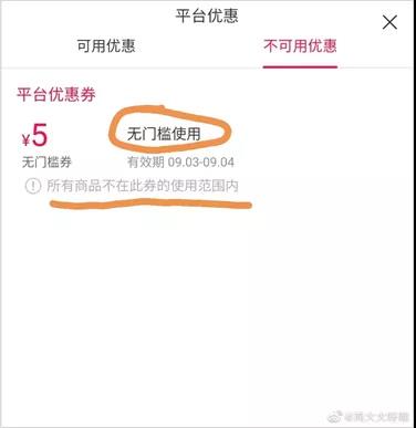 还有用户爆出平台送的优惠券,所有商品都不在使用范围之内。