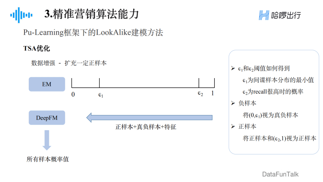 - 对正样本进行数据增强,即对正样本进行扩充,扩充的方法是将[є2,1]间的样本也视为真正样本,而[0,є1]间的样本视为真负样本,输入到DeepFM模型进行训练。