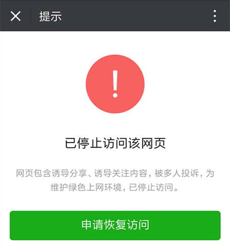 所以极有可能是,通过利益诱惑轻微诱导了用户分享,所以导致域名被封,而帐号没有被封。小伙伴们要切记,不要用利益诱导用户分享哦!