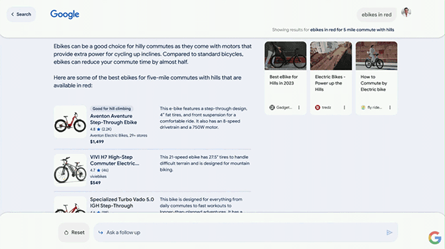 借助这种能力,搜索中的生成式AI还能够帮助用户在搜索产品时,快速了解需要考虑的因素和符合要求的产品,并将获得产品说明,包括相关的最新评论、评级、价格和产品图片,以做出理性的购物决定。