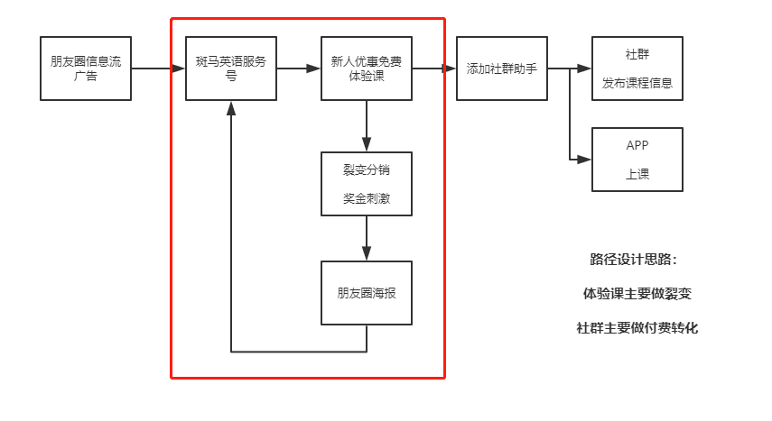 一旦用户第一次付费接触到课程体验后,产生的口碑、分享、分销、复购等连带的一系列后续反应,会让「斑马英语」的用户消费路径持续流通。