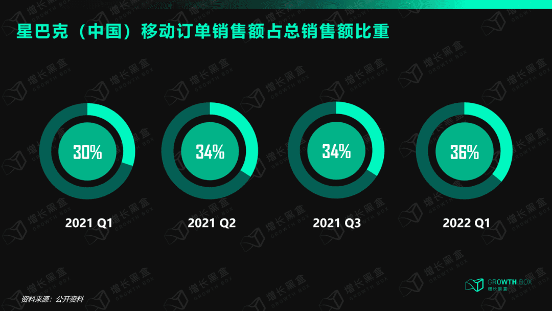 由于全触点优化点单流程,2021年星巴克移动订单销售额占比保持稳步增长,从2021年Q1的30%增加至2021年Q4的36%。[10]
