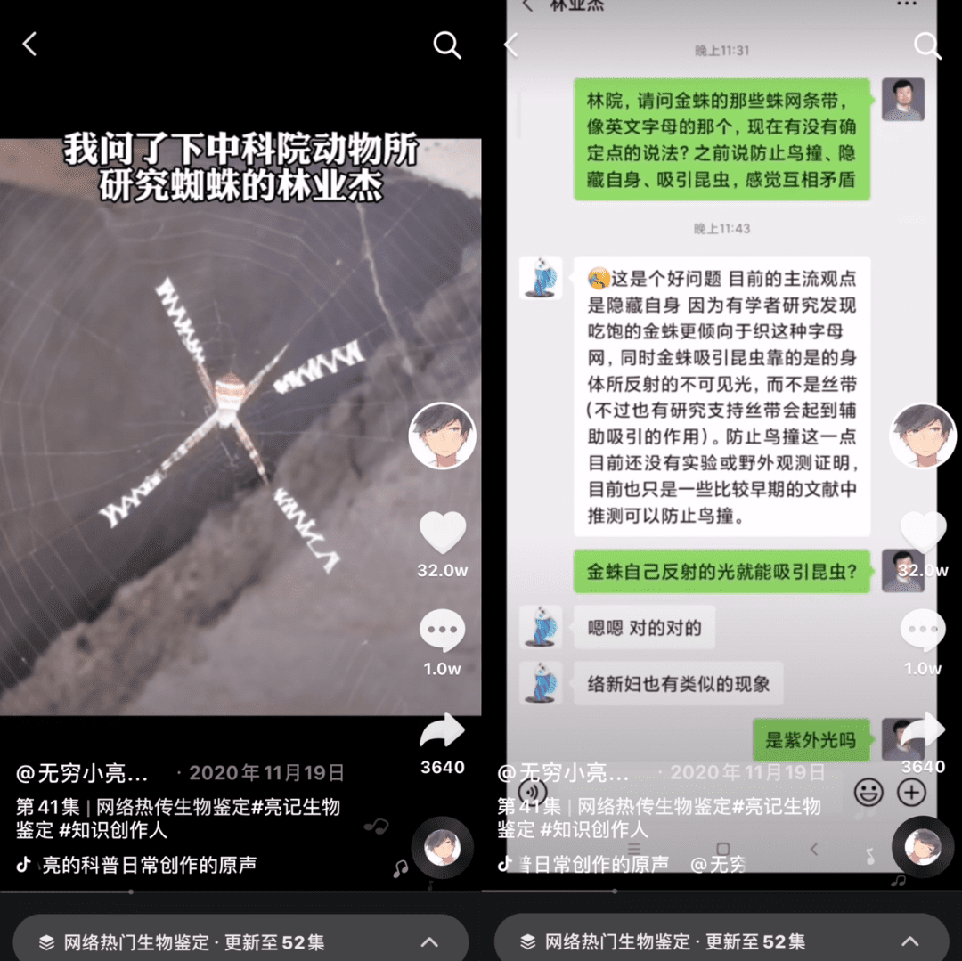 收集整合网友发来的视频做出的《网络热门生物鉴定》系列之所以如此受欢迎,也正是因为这一原因。面对网友的重复提问,无穷小亮也会更突出自己的专业态度,这其实就是让创作者走到了“台前”,进一步激发出了网友们的互动热情。
