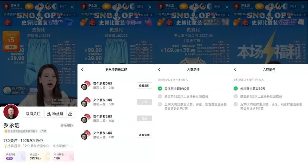《数科社》进入抖音APP发现,电商会员功能目前已能在“我的钱包”使用,除此之外去年被曝出内测的粉丝群聊功能也早已开启。以罗永浩账号为例,如若想加入他的粉丝群,先要关注账号并支付1抖币加入粉丝团,再通过满足不同的任务条件方可加入。