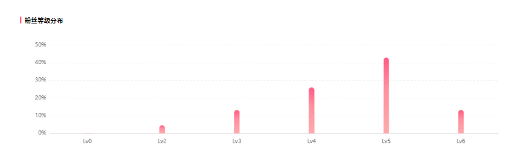 粉丝等级分布可以看出粉丝与平台黏性的高低,等级越高的用户说明对平台使用越频繁,周期比较长,这样用户黏性会更高,更优质。