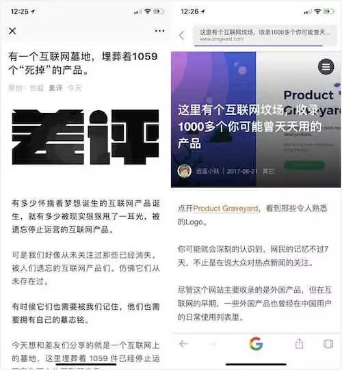 比如,它的标题《有一个互联网墓地,埋葬着1059个“死掉”的产品。》,语言组织编排上和中文互联网上较早(如果不是最早)报道的 PingWest品玩版本《这里有个互联网坟场,收录了1000多个你可能曾天天用的产品》太过于近似: