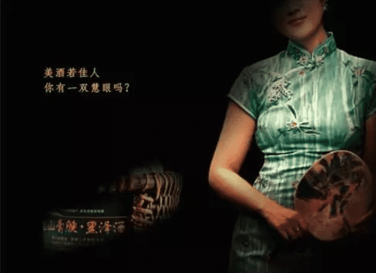 比如上面蓝山膏腴黑泽酒的这则平面广告,以一古典美女“犹抱琵琶半遮面”若隐若现的效果,再加上“美酒若佳人,你有一双慧眼吗?”疑问悬念式的广告诉求,吸引消费者的眼球,激发消费者的好奇心理,利用普通美女达到比较好的广告宣传效果。