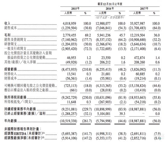 美团2017年收入339亿元人民币。2015年至2017年调整后净亏损59亿元、54亿元、29亿元。