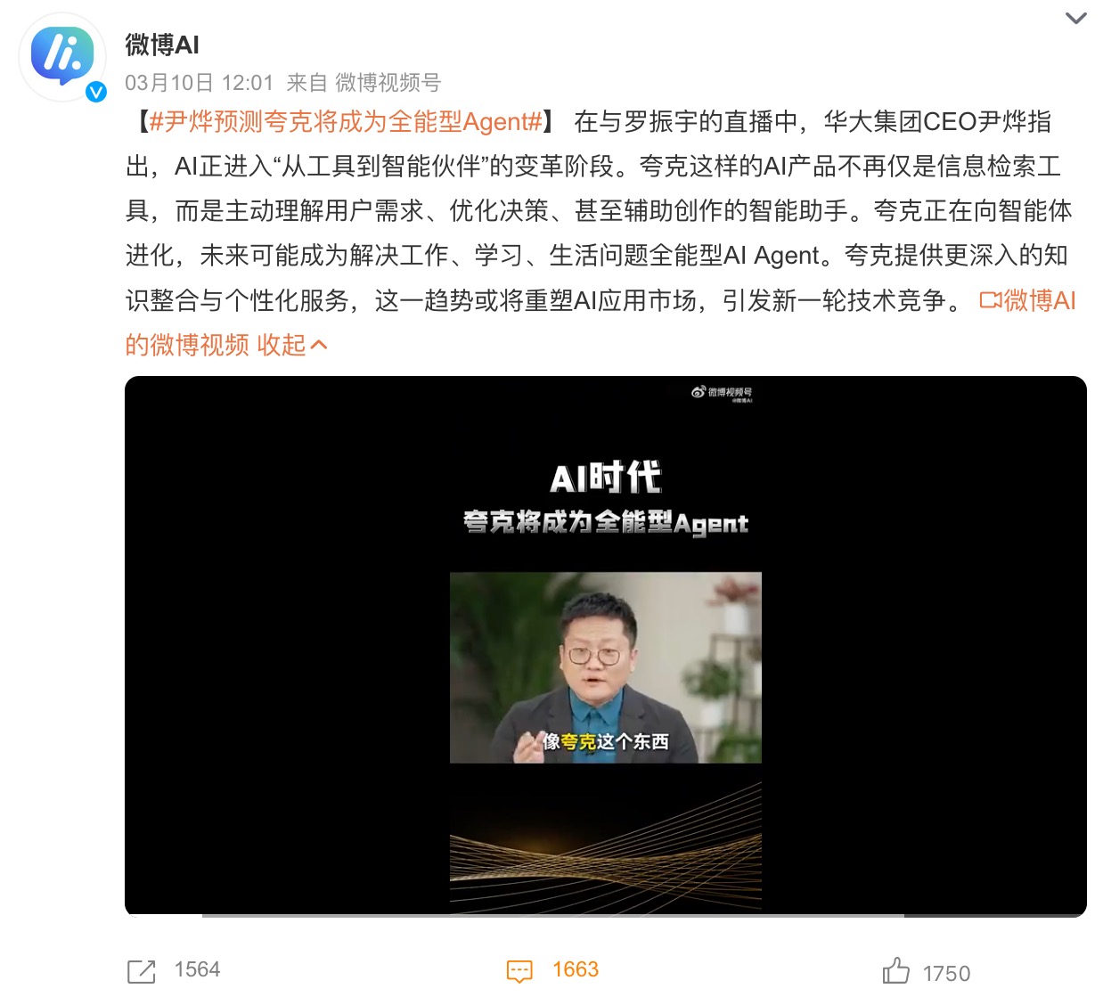 罗振宇对此也表示认同:如果中国要出现“超级AI(应用)全家桶”,可能就是在夸克上面。