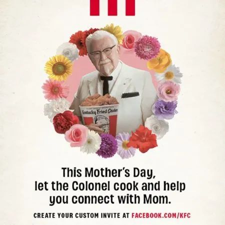 比如肯德基去年在美国“给妈妈看的脱衣舞男”的母亲节创意曾经大为走红,今年他们的母亲节活动就显得有点“寒酸”——消费者可以和肯德基Facebook主页上的Messenger机器人互动,提供一次虚拟的“母亲节大餐”。由于线下门店无法营业,肯德基鼓励消费者点外卖,提供满20美元免费的送餐服务。