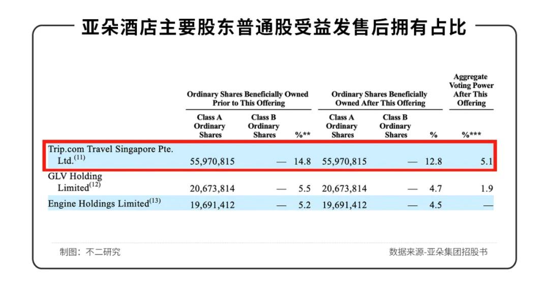 最新招股书披露,王海军(即耶律胤)持股27.1%,为亚朵的第一大股东;携程集团持股12.8%,为其第四大股东。