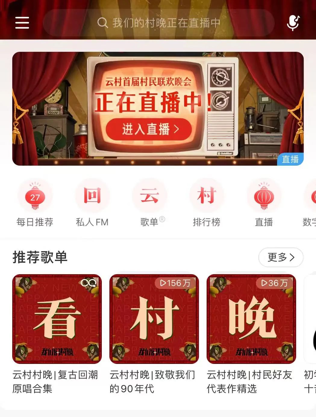 这不,刚从挤满了几万只修勾的蹦迪直播间里晃出,转头就被音乐社区里喜庆的大舞台首页秀了一脸。