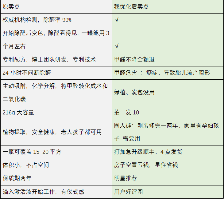 举例,一个除甲醛产品的客户找我咨询,他本来的话术是这样的: