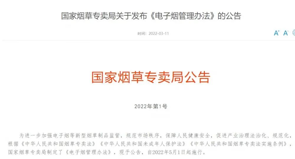 将于5月1日起施行的《电子烟管理办法》,给行业添了新的变数。