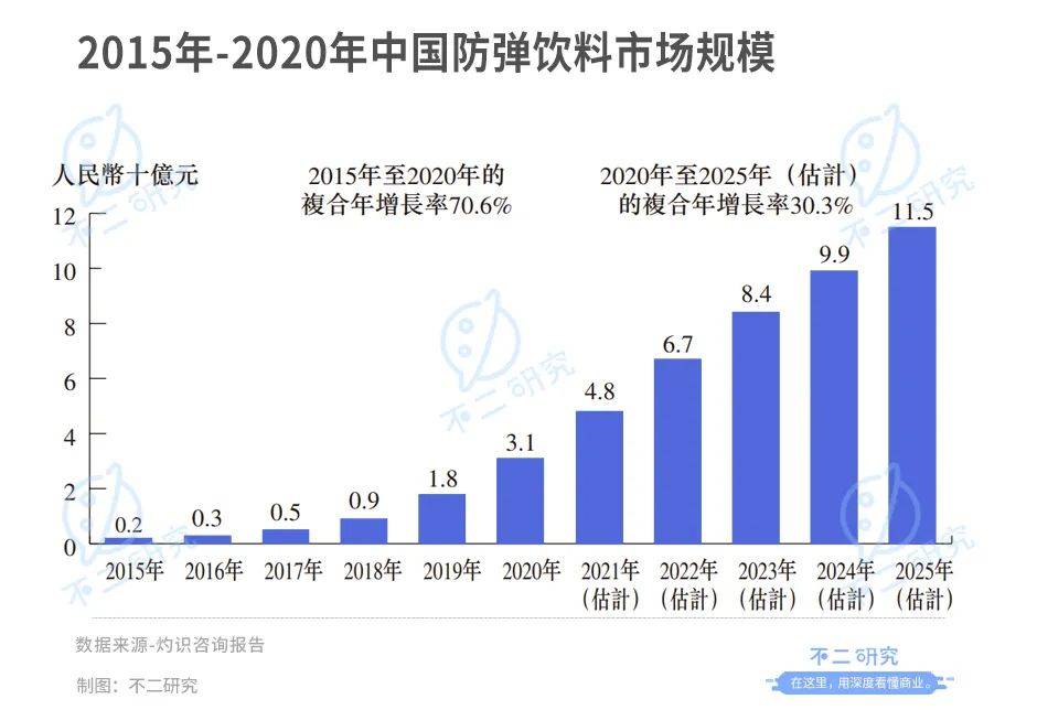 根据灼识咨询报告,2015年至2020年中国防弹饮料市场的市场规模由2亿元增加至31亿元,复合年增长率为70.6%;预计2020年至2025年也将以30.3%的速度增长。而巨星传奇在国内防弹饮料市场中份额为40.6%,位居第一,产品的快速铺开也是借助于周杰伦强大的私域流量。