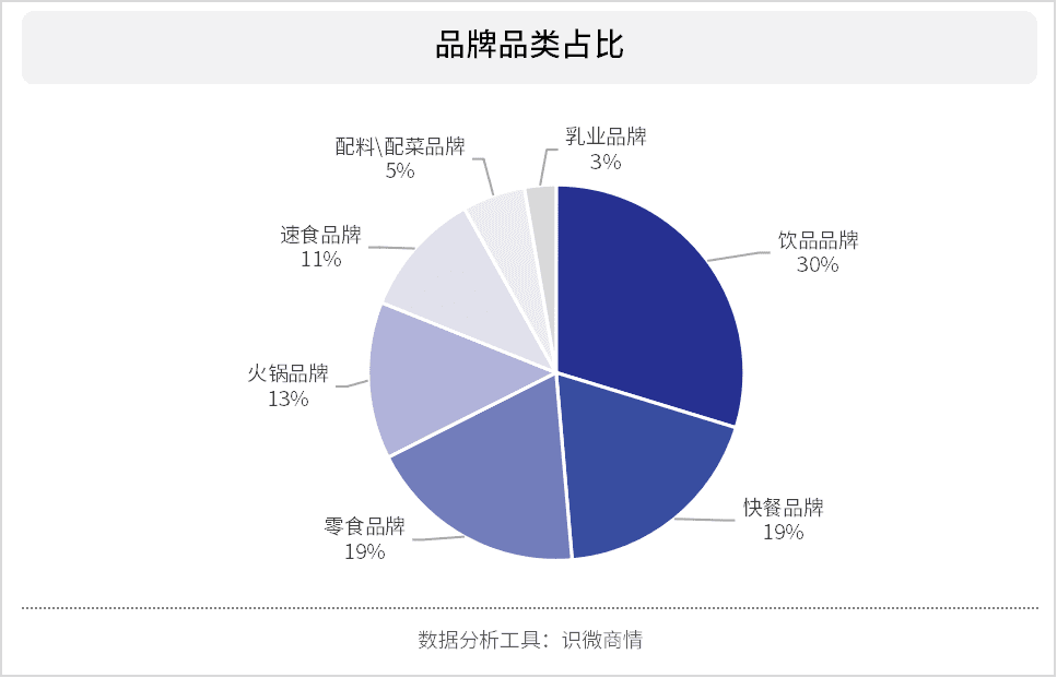 从品牌品类占比来看,35项舆情事件共涉7项品类——饮品、快餐、零食、火锅、速食、配料配菜及乳业。其中,鲜饮饮品品牌(新式茶饮、咖啡)是舆情最高发的品类,占比30%。快餐和零食品牌并列第二,分别占比19%。
