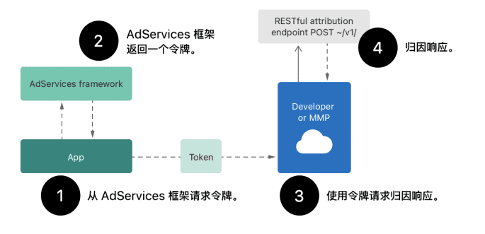 广告主如果想通过 AdServices framework 和 RESTful API 来获取归因数据,可以按照以下流程实施: