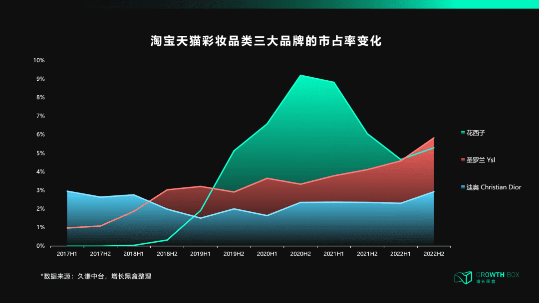 我们观察到,欧莱雅集团旗下的YSL圣罗兰美妆今年在天猫表现十分亮眼,不仅逆势增长,市占率甚至成为彩妆品类第一。