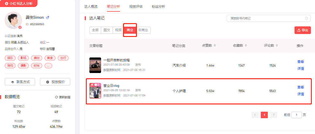 于此同时,在明星或者头部红人投放则能持续的发挥其影响力,在帮助品牌进行背书的同时,也能获得直接的粉丝后援转化和持续的流量宣推。