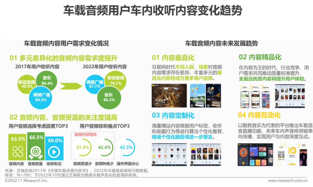 •收听内容趋势:车内音频内容矩阵差异多元,用户收听体验将进一步提升;