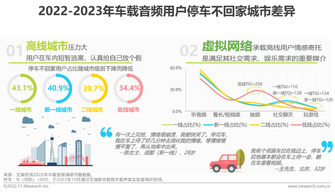 高线城市用户更愿在车内逗留,听音频、寄情网络释放压力