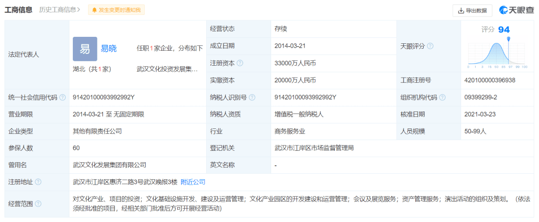 根据官方资料,武汉文投集团成立于2014年3月,是经武汉市委市政府批准成立的市属大型国有文化企业与文化投资平台,截至2020年7月,武汉文投集团拥有出资企业23家,资产总额达近40亿元,目前,已布局形成文化园区、视听传媒、会节展览、文化金融四大主业板块。2020年,武汉文投集团被评为首届“湖北省文化企业十强”。