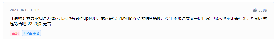 但是经由UP主亲自下场在评论区说明,才知道这次停更潮他毫不知情,甚至纯属巧合卷入这场莫名其妙的新闻里。