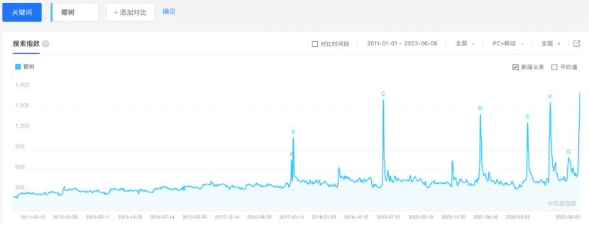 从百度指数也可以看到,在诸多擦边事件的舆论发酵下,椰树从热度到销量上都成为了妥妥的赢家。